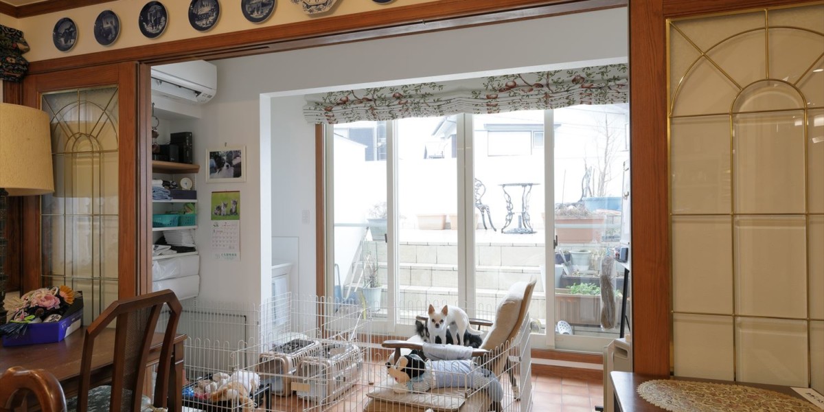 動物と暮らす新しい形 ペットスペースにひと仕事 以前当社で建てた住宅を大々的にリフォームしました。 ライトブルーのサイディングに白い装飾が生えるさわやかな外観。 施主様の希望は、ペットと暮らすための改装。 掃き出しの窓と縁側スペースの間にスライディングドアを設け、急な来客時にも居住スペースとペットスペースを仕切れるようにしました。 CATEGORIESリフォームPLACE神奈川県CLIENTI様DATE2018